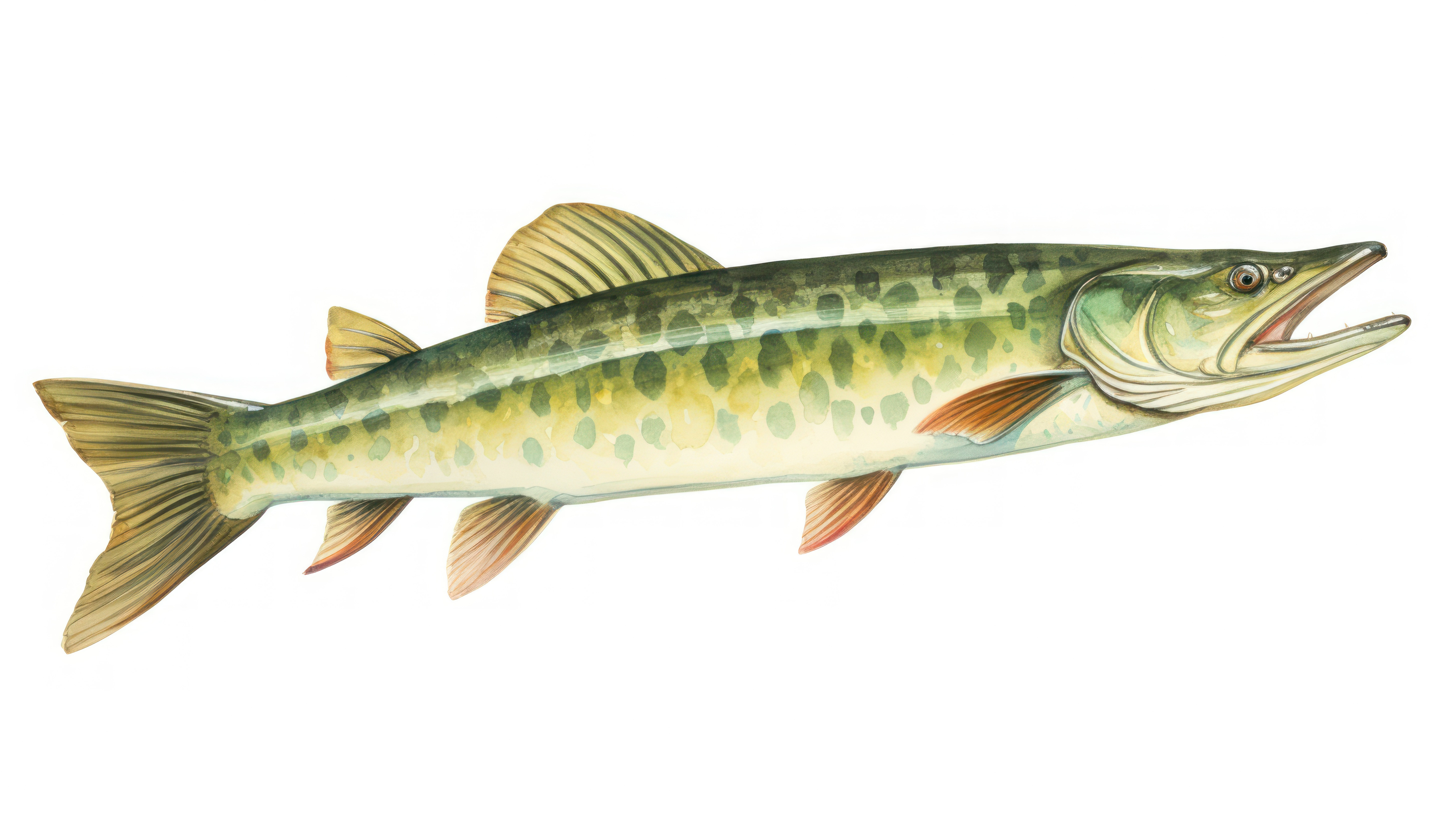 Fish pikeWatercolor painting Handmade drawing Isolated on white 00085 00
