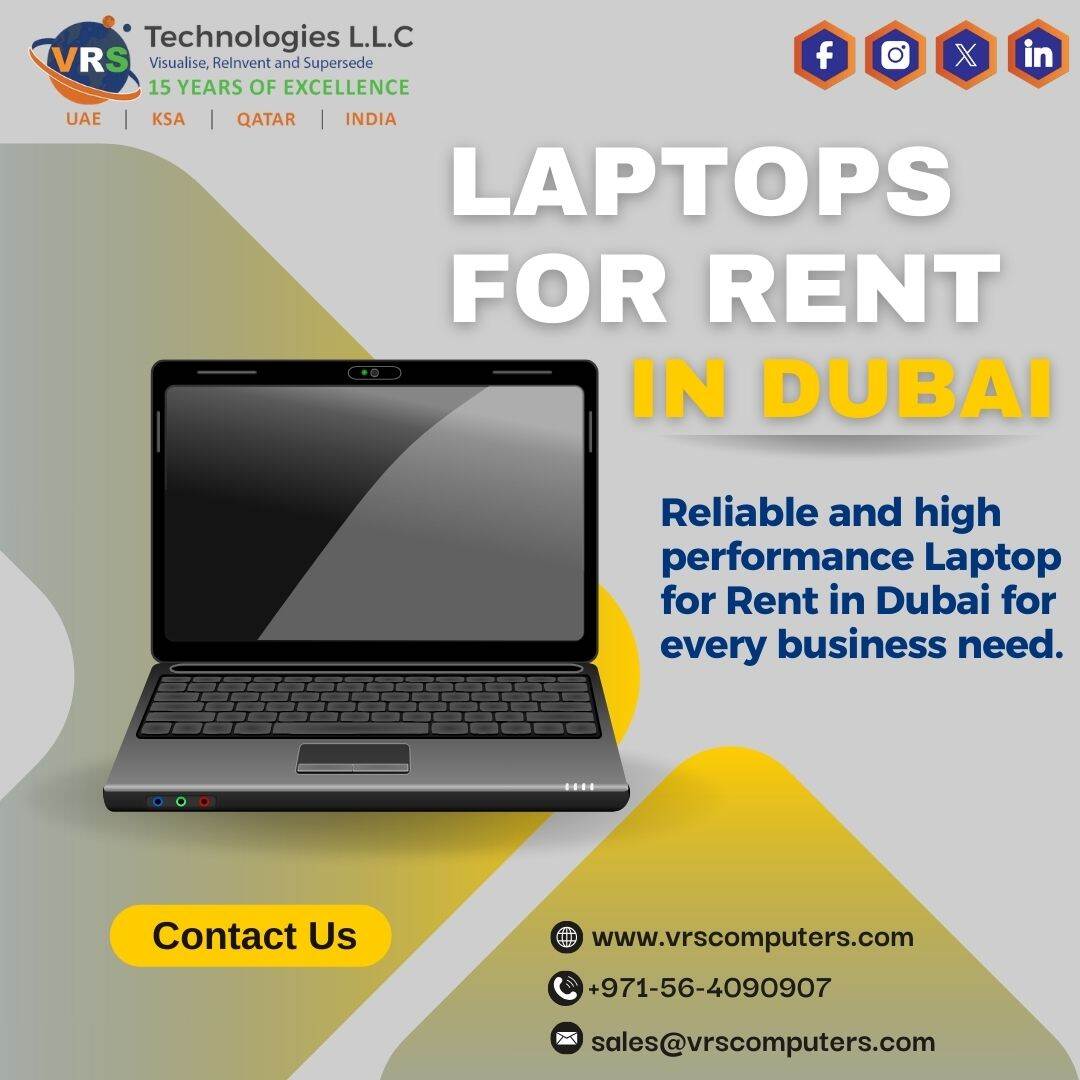 Access the latest laptop models for short or long-term projects, training, and business needs in Dubai. VRS Technologies LLC provides reliable Laptops for Rent with quick delivery and setup. Enhance your team’s productivity today. Call +971564090907.