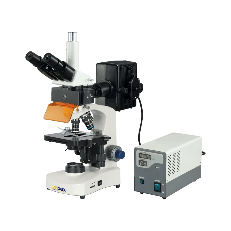 Labdex Fluorescence Microscope is built with an epi-fluorescence system and binocular head to deliver detailed fluorescent imaging. It includes WF10X/18 mm eyepieces, LED illumination with brightness control, an Abbe 1.25 NA condenser with iris diaphragm and filter, coaxial focus, a quadruple nosepiece, and a mechanical stage.