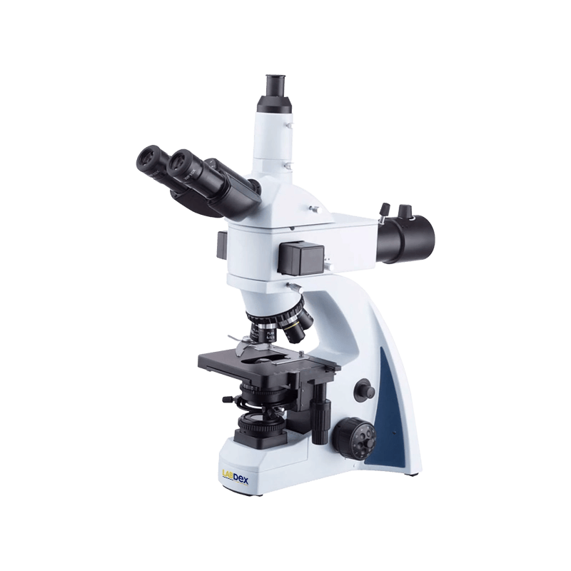 Labdex Fluorescence Microscope features an epi-fluorescence system with a trinocular head for advanced fluorescent imaging. It includes WF10X/22 mm eyepieces, S-LED illumination with brightness control, a 1.25 NA centerable Abbe condenser, coaxial coarse/fine focus, a reversed quadruple ball bearing nosepiece, and a mechanical stage.