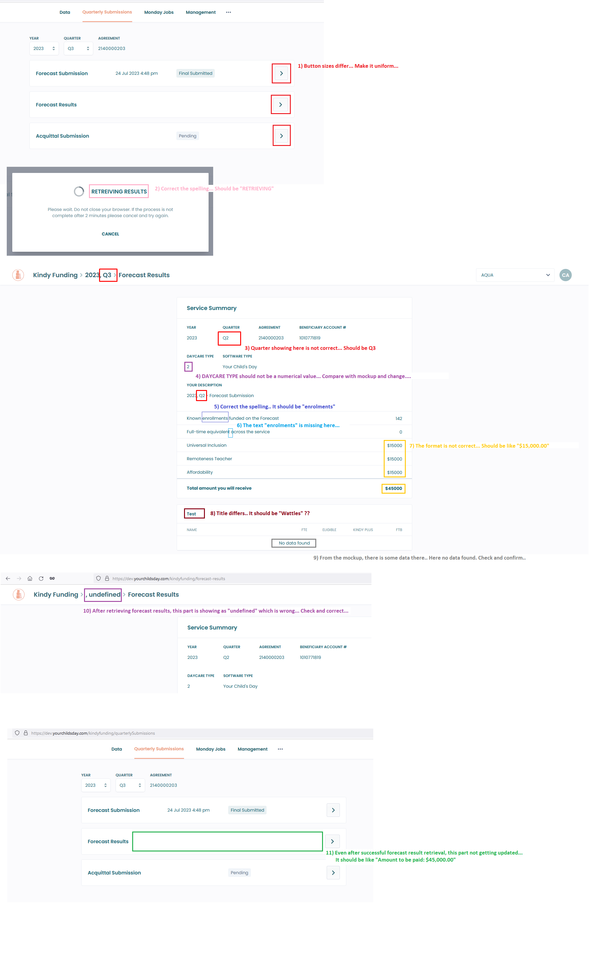 Forecast UI Issues