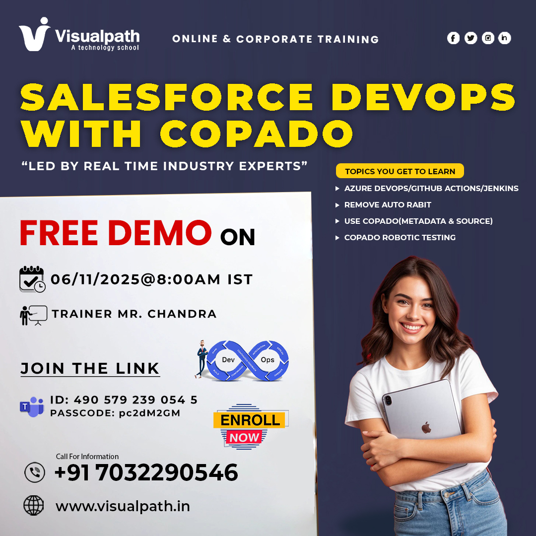 Join Visualpath’s Salesforce DevOps with Copado Training to gain real-time experience in CI/CD automation, release management, and version control from industry experts.