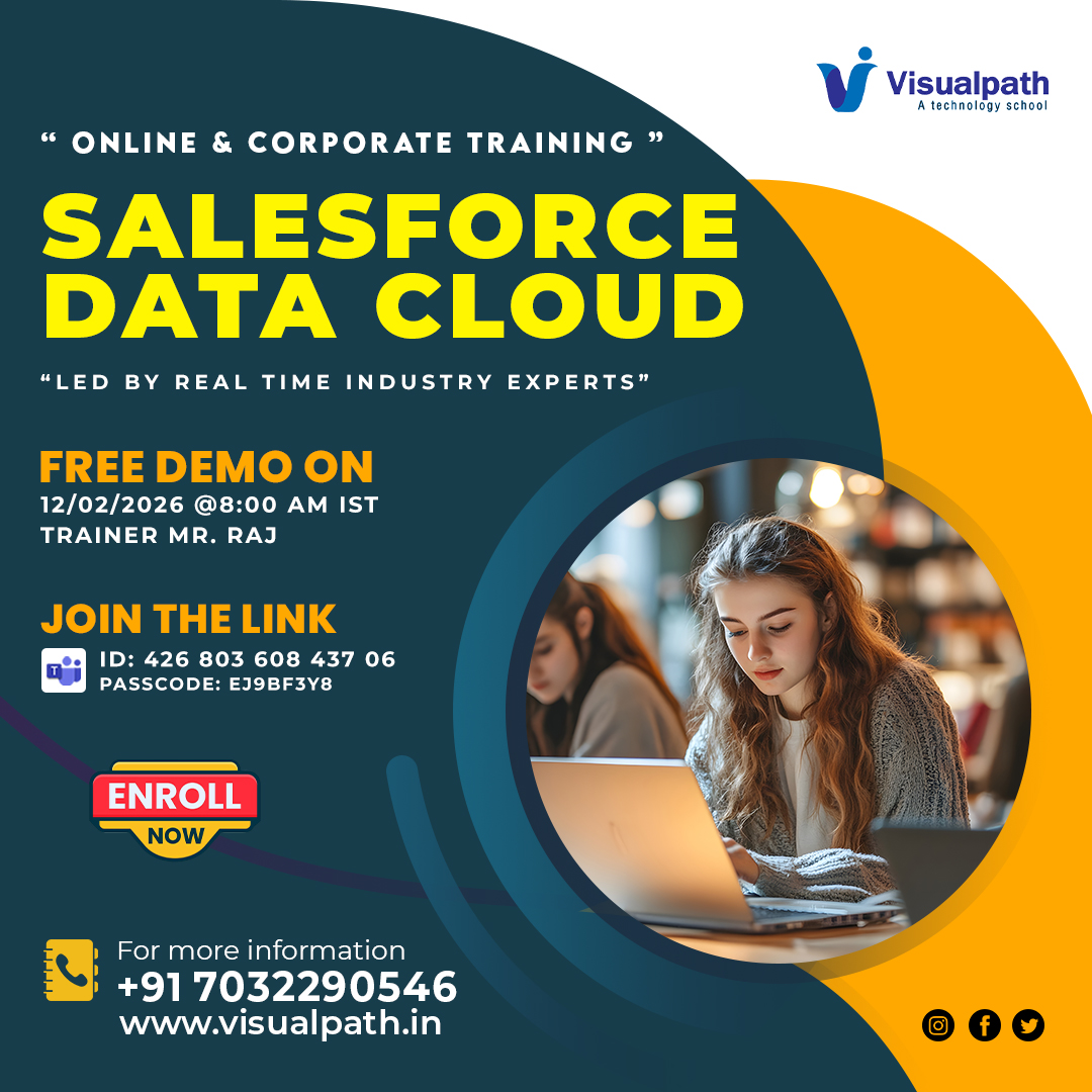 🚀 Take your career to the next level with the live Salesforce Data Cloud demo at Visualpath. Explore real-time data integration, Customer 360, identity resolution, and analytics best practices with hands-on training from Mr. Raj.