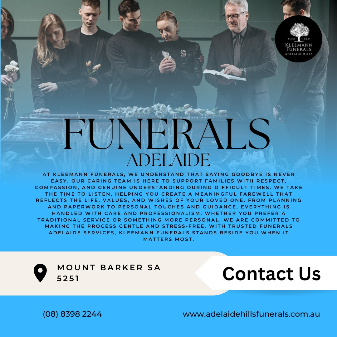 At Kleemann Funerals, we understand that saying goodbye is never easy. Our caring team is here to support families with respect, compassion, and genuine understanding during difficult times. We take the time to listen, helping you create a meaningful farewell that reflects the life, values, and wishes of your loved one. From planning and paperwork to personal touches and guidance, everything is handled with care and professionalism. Whether you prefer a traditional service or something more personal, we are committed to making the process gentle and stress-free. With trusted Funerals Adelaide services, Kleemann Funerals stands beside you when it matters most.