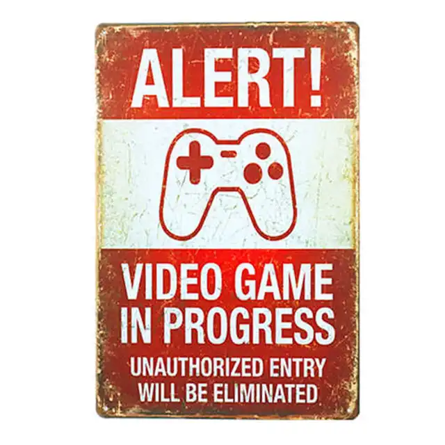 Funny Vintage Tin Sign Alert Video Games In Progress 8 x12 Man Cave.jpg 640x640