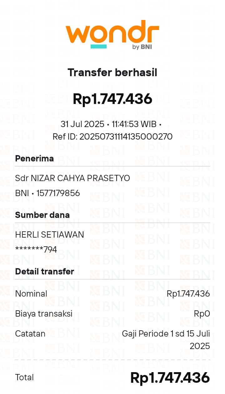 Gaji 1 15 juli 2025 NIZAR