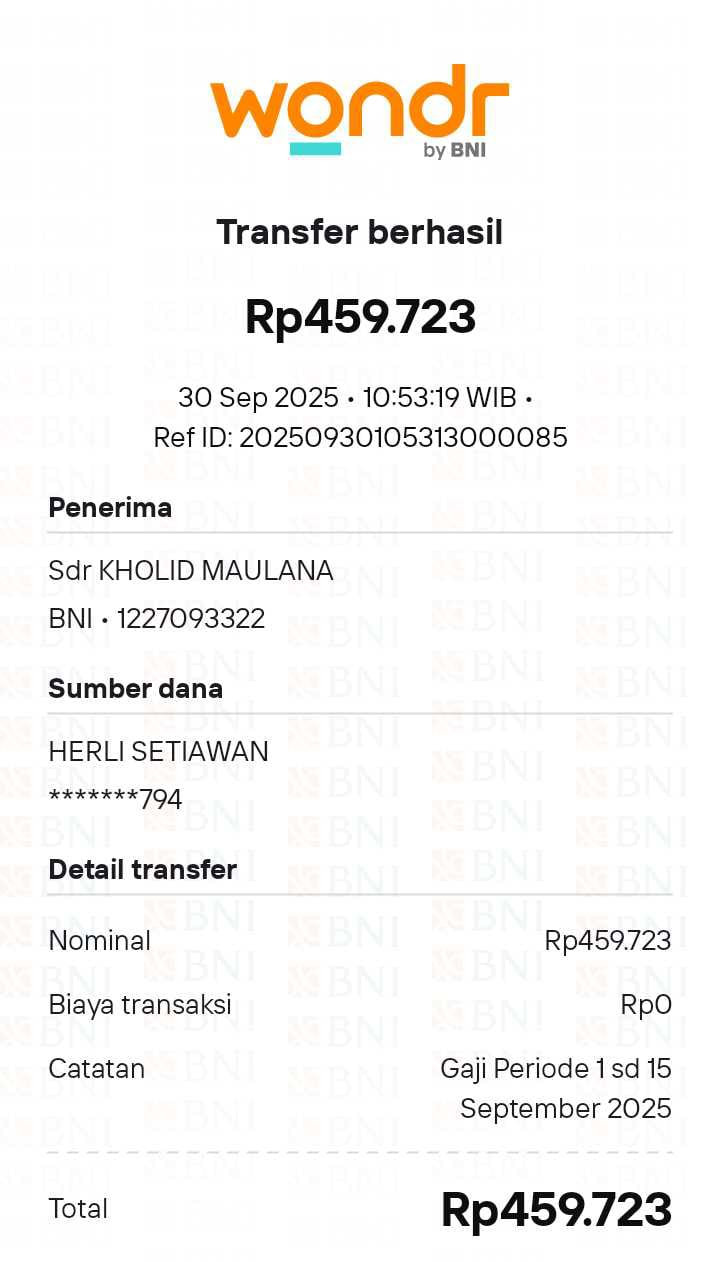 Gaji 1 15 september 2025 KHOLID