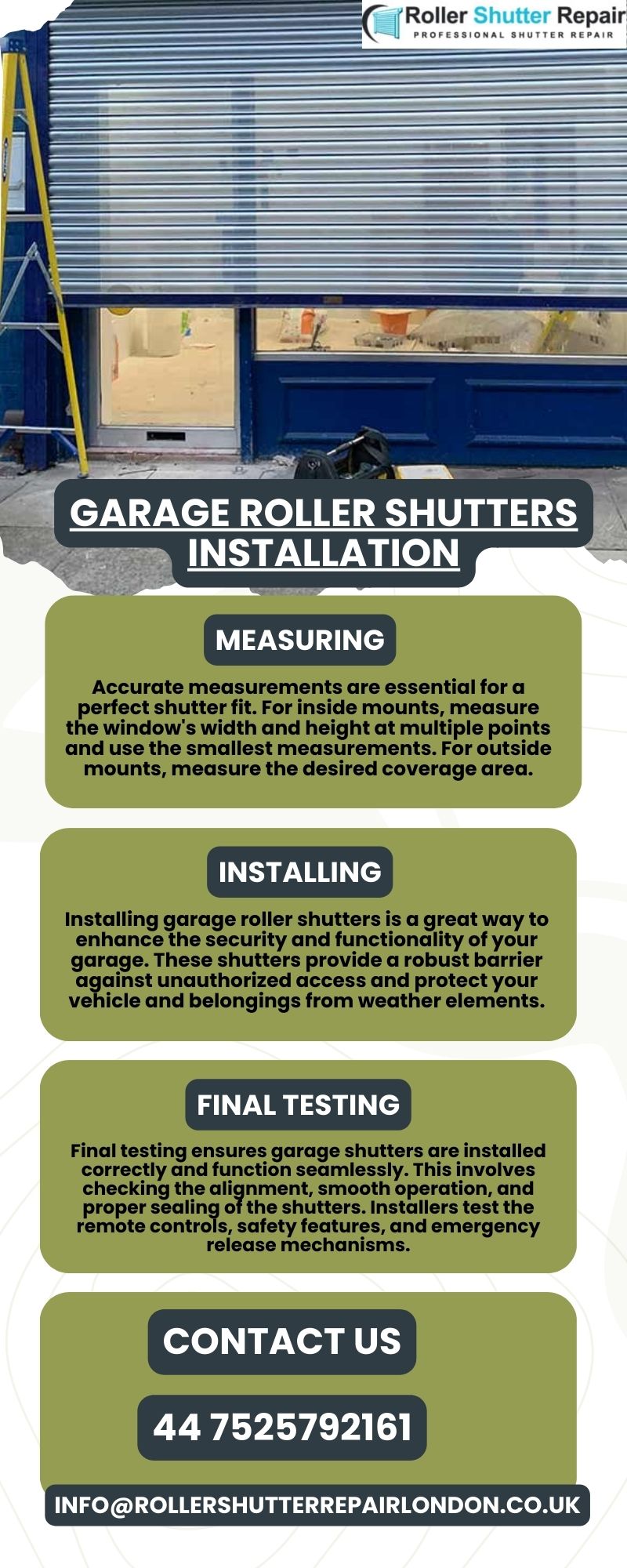 Upgrade your property with expert garage roller shutters installation services. Designed for security, durability, and convenience, our shutters enhance your garage's functionality and appearance. Trust our professional team for precise installations tailored to your needs. Perfect for residential and commercial garages, ensuring lasting protection and style. Contact us today for premium solutions. Contact US :