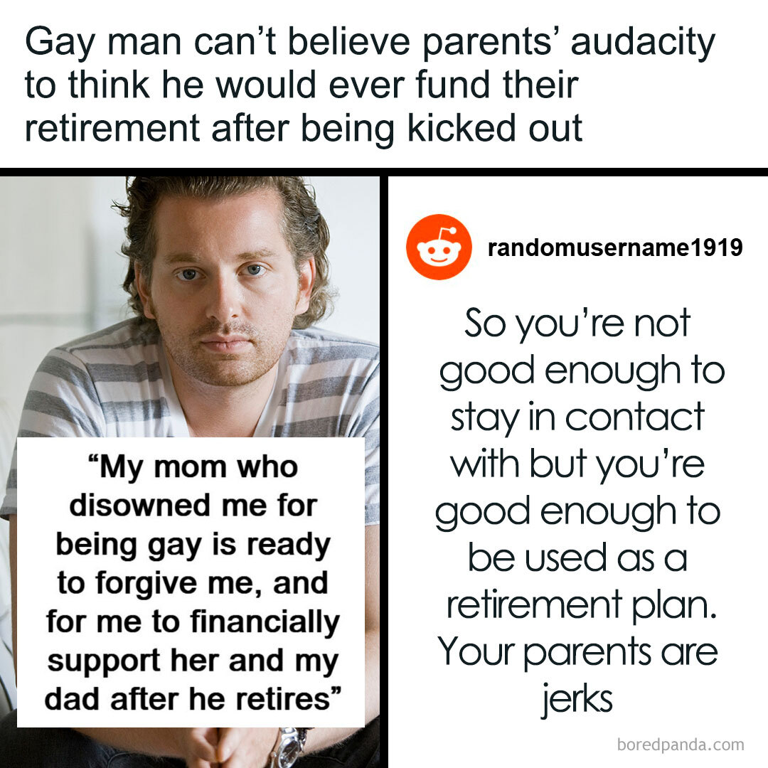 gay son mother forgives wants financially support retirement
