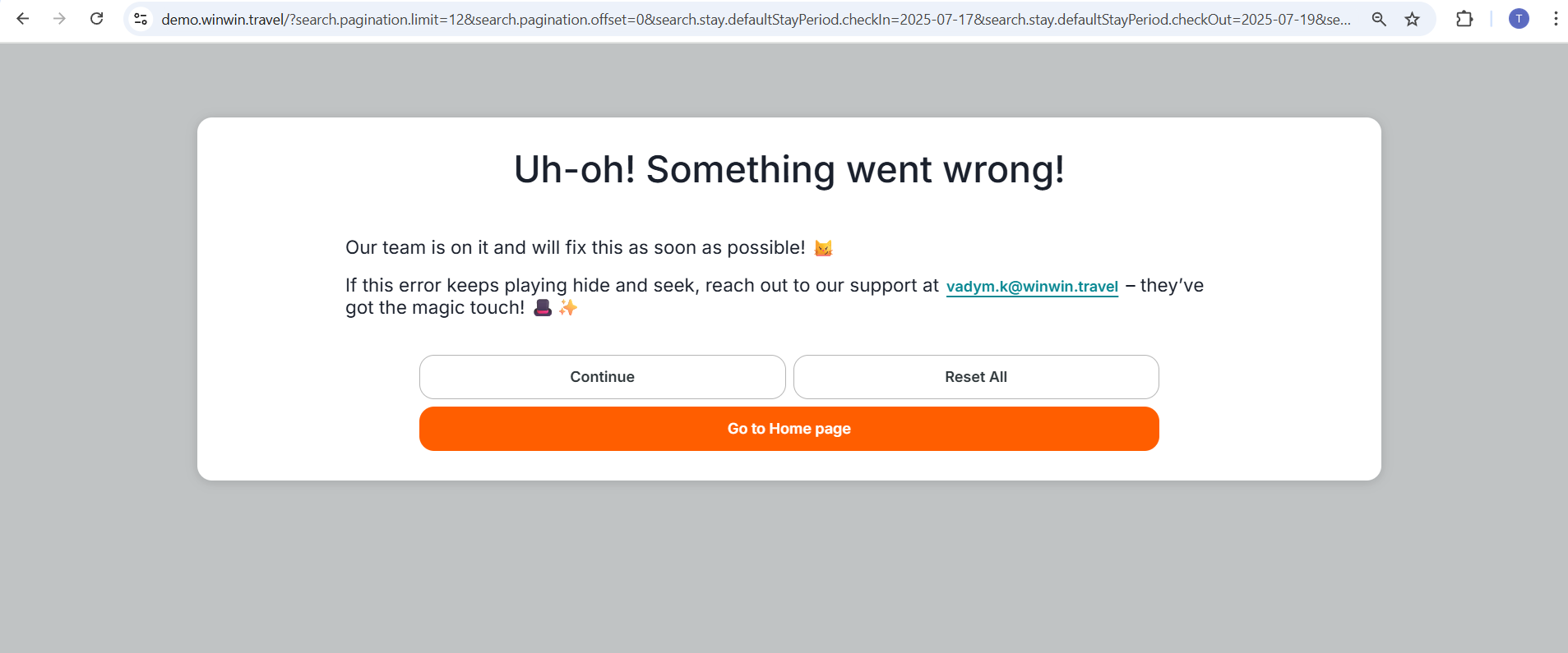 Some errors have occured and the system couldn't process your request.