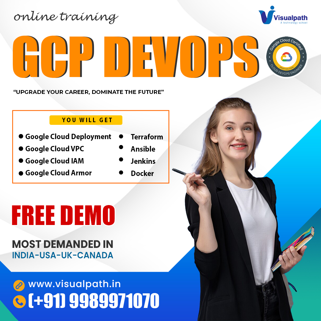 GCP DevOps Training in Ameerpet- Visualpath is offering DevOps On Google Cloud Platform Online Training, available worldwide. Our GCP DevOps Training you will Learn to use essential GCP tools to automate deployments, manage resources, and enhance software development processes. Book A Free Demo at +91-9989971070.