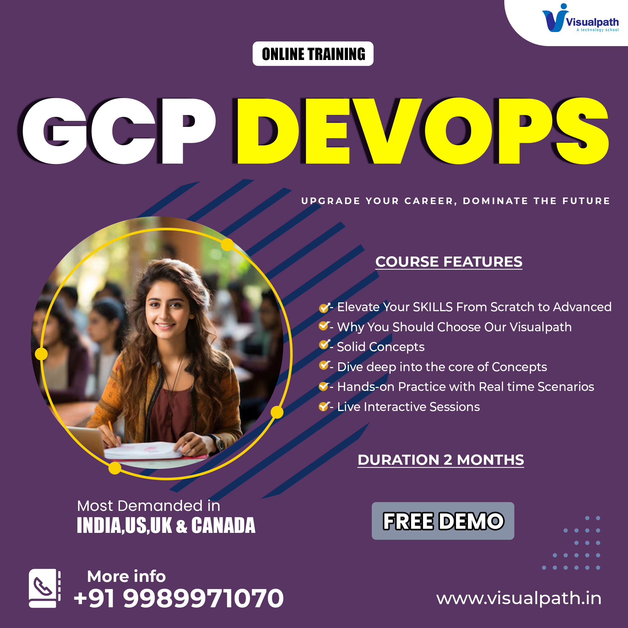 GCP DevOps Training institute in Ameerpet- Visualpath provides the best GCP DevOps Online training, available worldwide. Gain hands-on experience in optimizing deployments, monitoring performance, and ensuring security in a cloud environment through our GCP DevOps Training. Book a Free Demo at +91-9989971070.