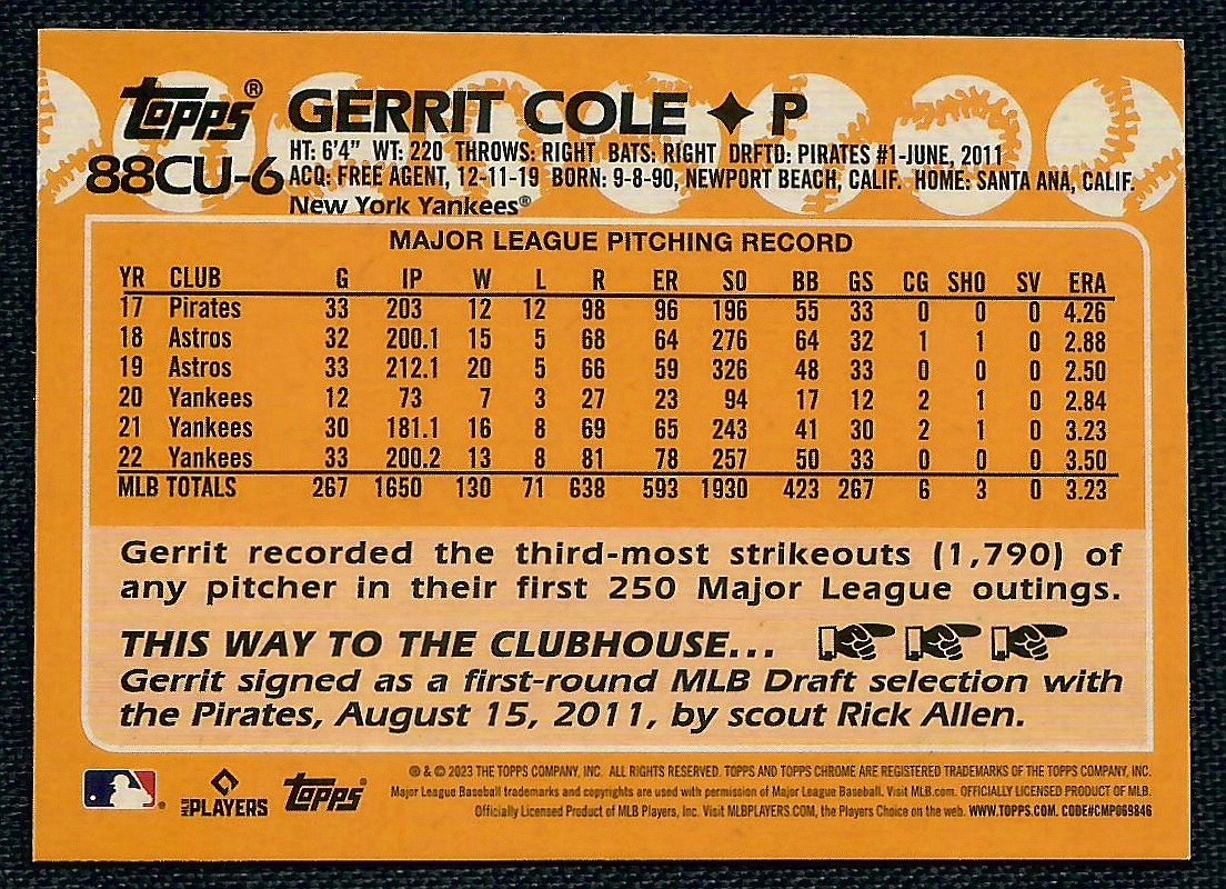 Gerrit Cole Topps 1988 Refractor 1