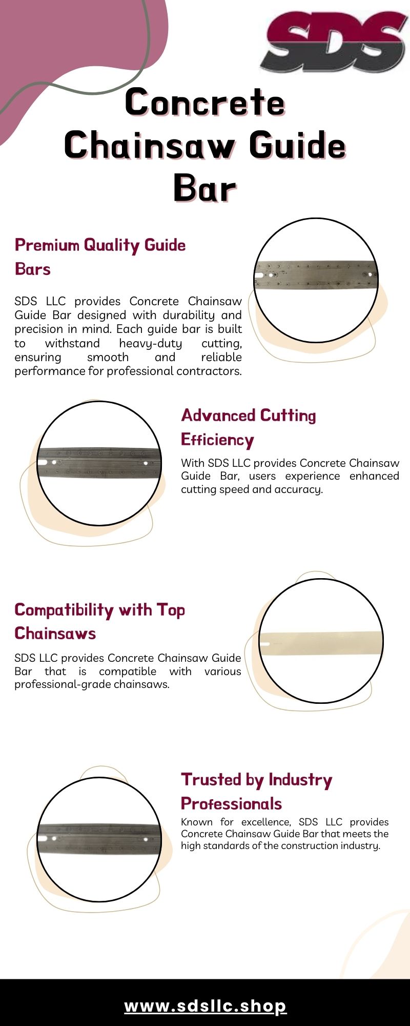 SDS LLC provides concrete chainsaw guide bar designed for precision, strength, and durability in the toughest cutting applications. Our high-performance guide bars ensure smooth and efficient cutting of concrete, stone, and other tough materials. Trusted by professionals, SDS LLC delivers reliable concrete chainsaw guide bar solutions that enhance productivity and extend tool life for every project.