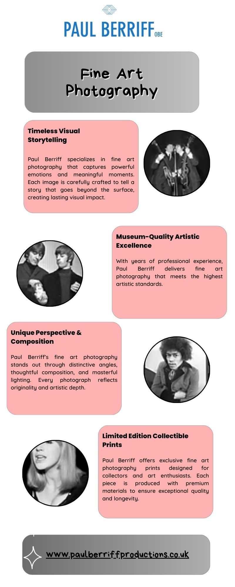 Paul Berriff is renowned for fine art photography that captures emotion, detail, and timeless storytelling through every frame. With a distinctive artistic vision and decades of experience, his work transforms powerful moments into museum-quality imagery. Each piece of fine art photography reflects creativity, authenticity, and craftsmanship, making it perfect for collectors, galleries, and art enthusiasts worldwid