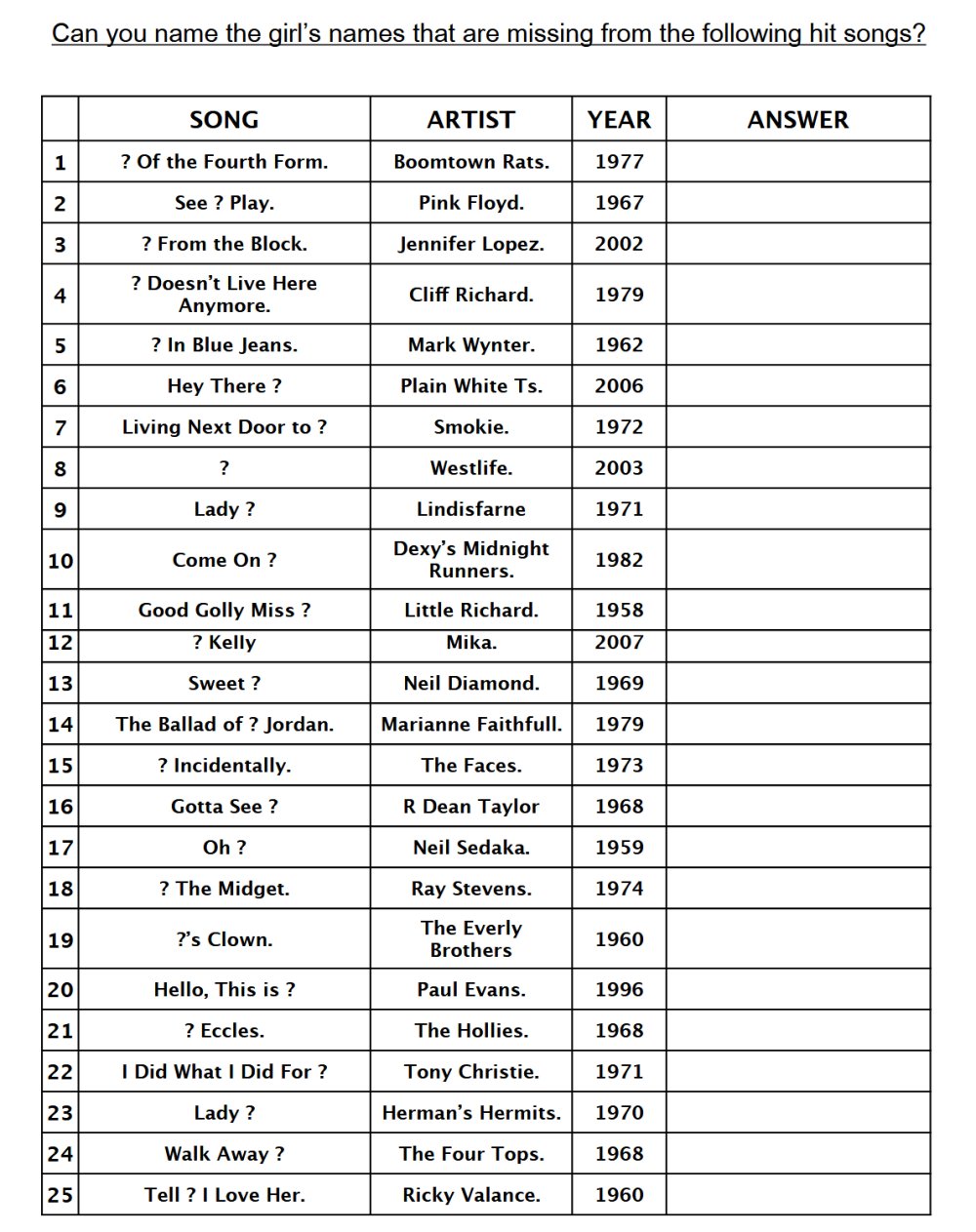 girls names quiz