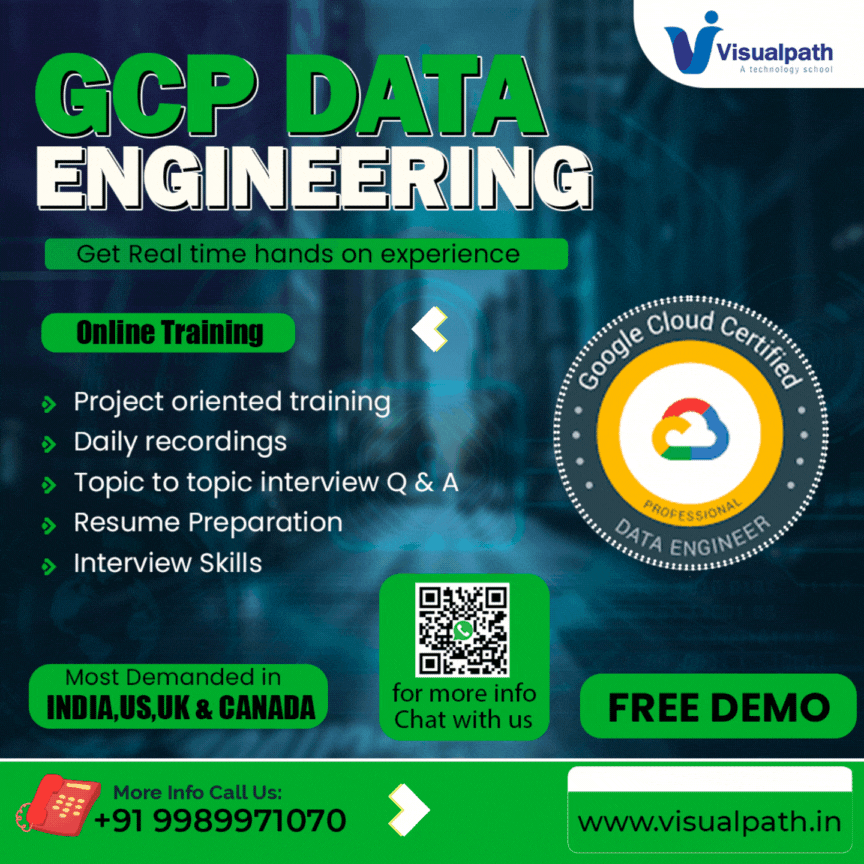 Visualpath provides top-quality GCP Data Engineer Online Training conducted by real-time experts. Our training is available worldwide, and we offer daily recordings and presentations for reference. Call us at +91-9989971070 for a free demo.