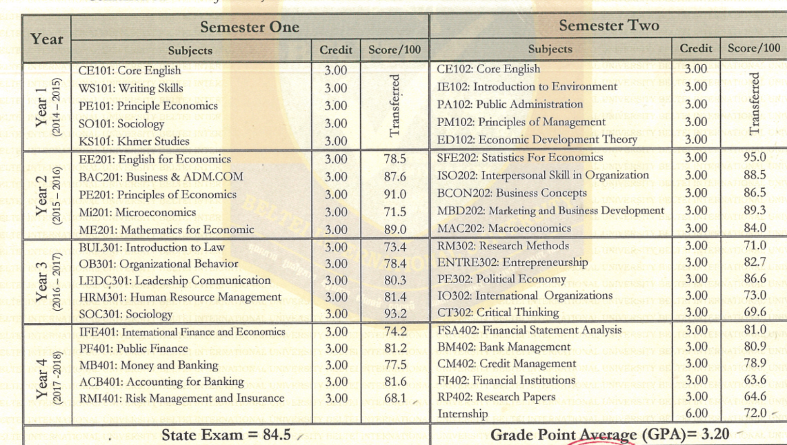 GPA Transcript