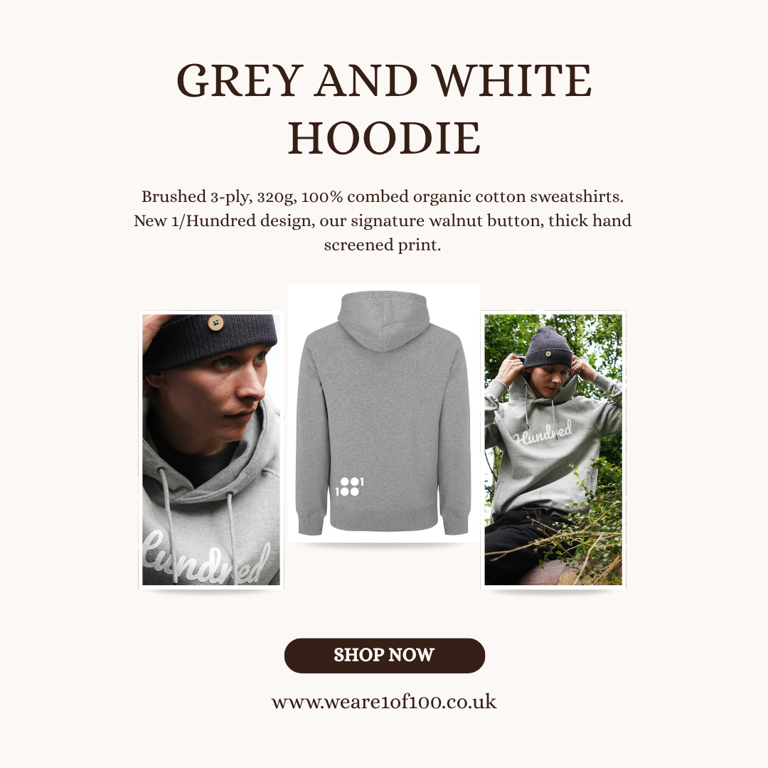 Grey and White Hoodie by Weare1of100 blends premium comfort with limited-edition streetwear style. Crafted from organic cotton, it features bold design, signature details, and a timeless fit. A sustainable choice for those who value individuality and standout fashion.