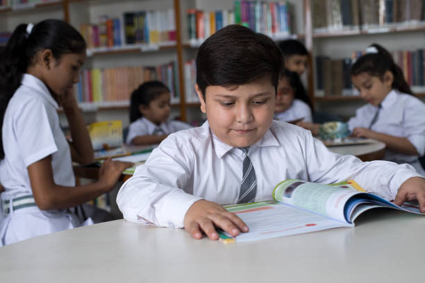 Group of students reading books at school library