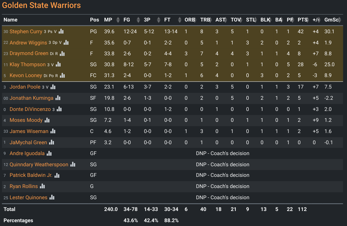 GS box score