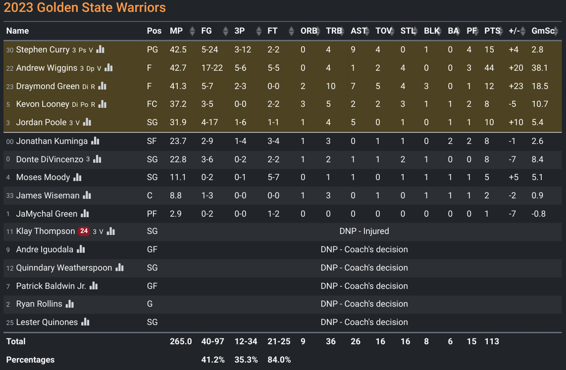 GS box score