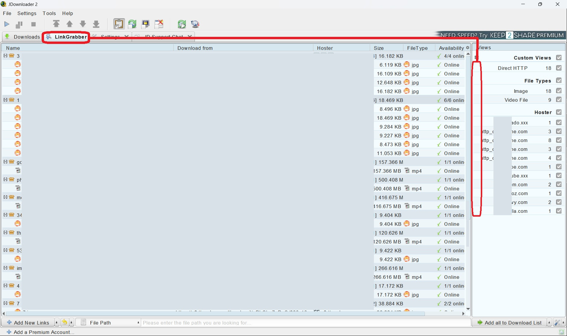 GUI Linkgrabber Favicons Missing Views