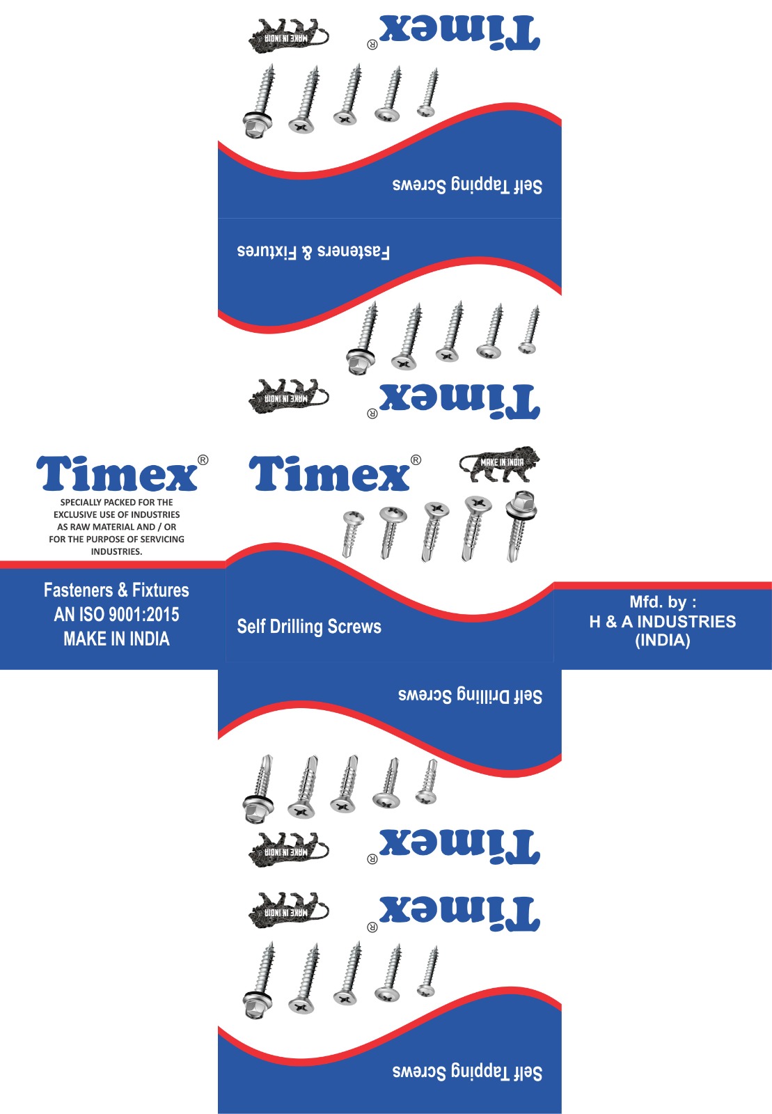 TIMEX CHIPBOARD SCREWS FLAT HEAD COATING: ZINC EN ISO 9001:2015 MAKE IN INDIA