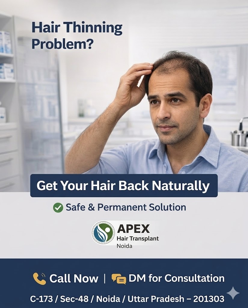 Hair thinning problem ko ignore mat kariye ❗ Sahi time par treatment lene se aap apne natural hair wapas paa sakte hain 💯 Safe, effective aur long-lasting solution available hai. 📍 APEX Hair Transplant, Noida 📩 DM karein consultation ke liye 📞 Call Now to book your appointment #hairtransplant #hairthinning #hairlosssolution #baldness #hairtreatment #haircareindia #noidaclinic #noida #hairrestoration #naturalresults #mensgrooming #confidenceboost #hairgoals #transformation #apexhair