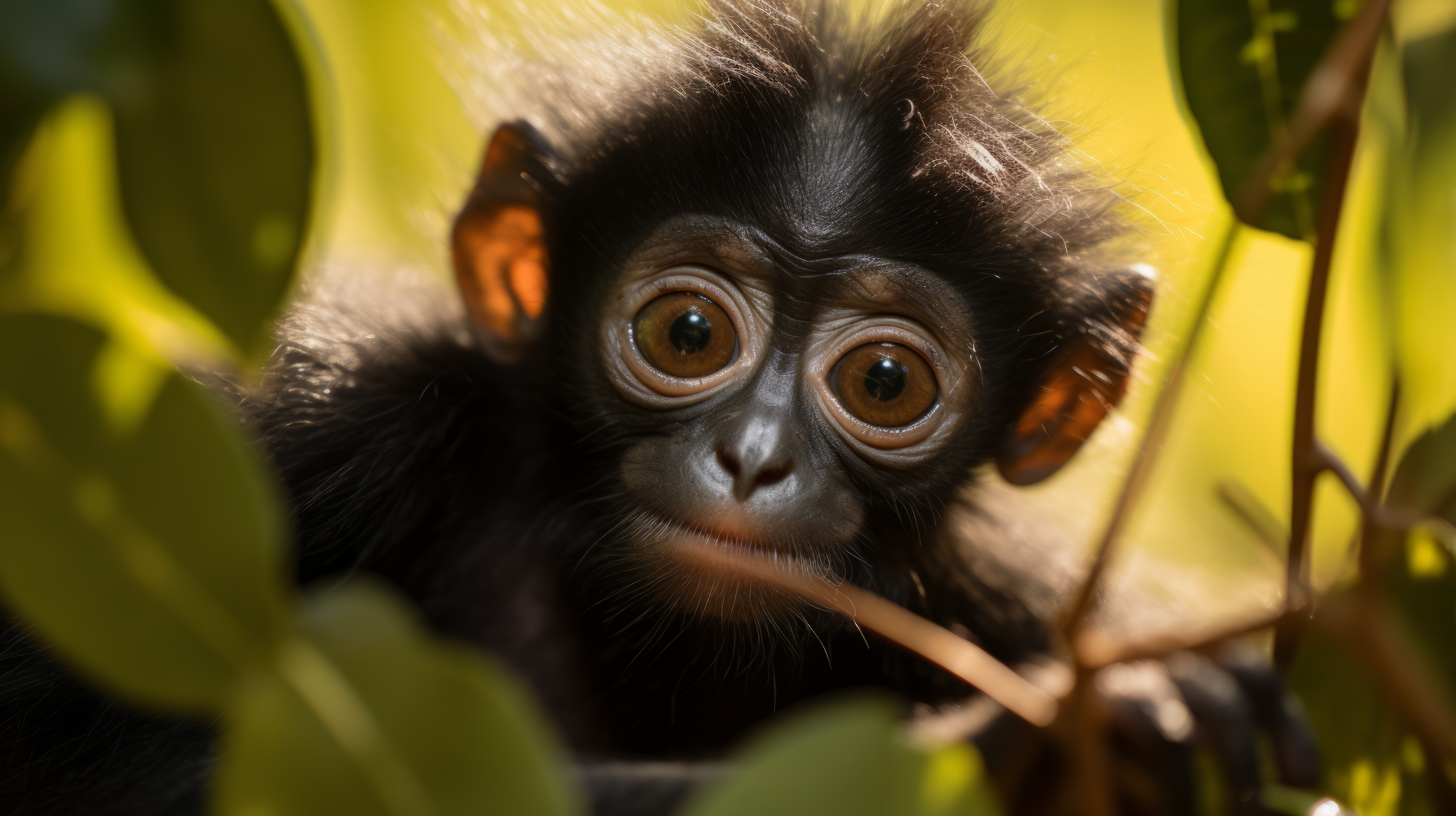 Handheld close up shot of a spider monkey riffling through leaves 00350 03