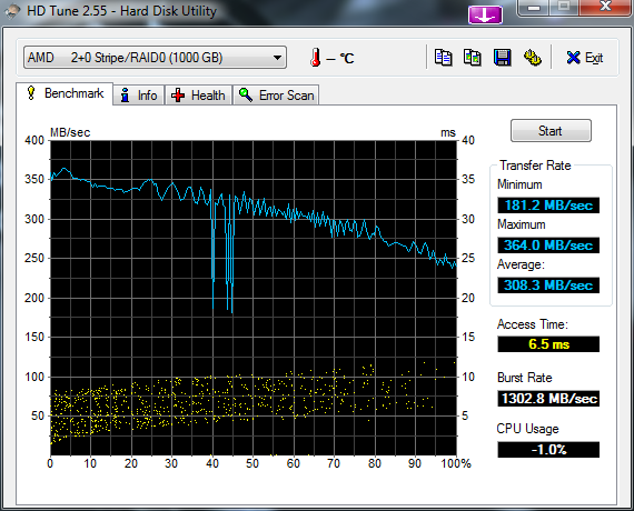 HDTune Benchmark AMD 2+0 Stripe RAID0