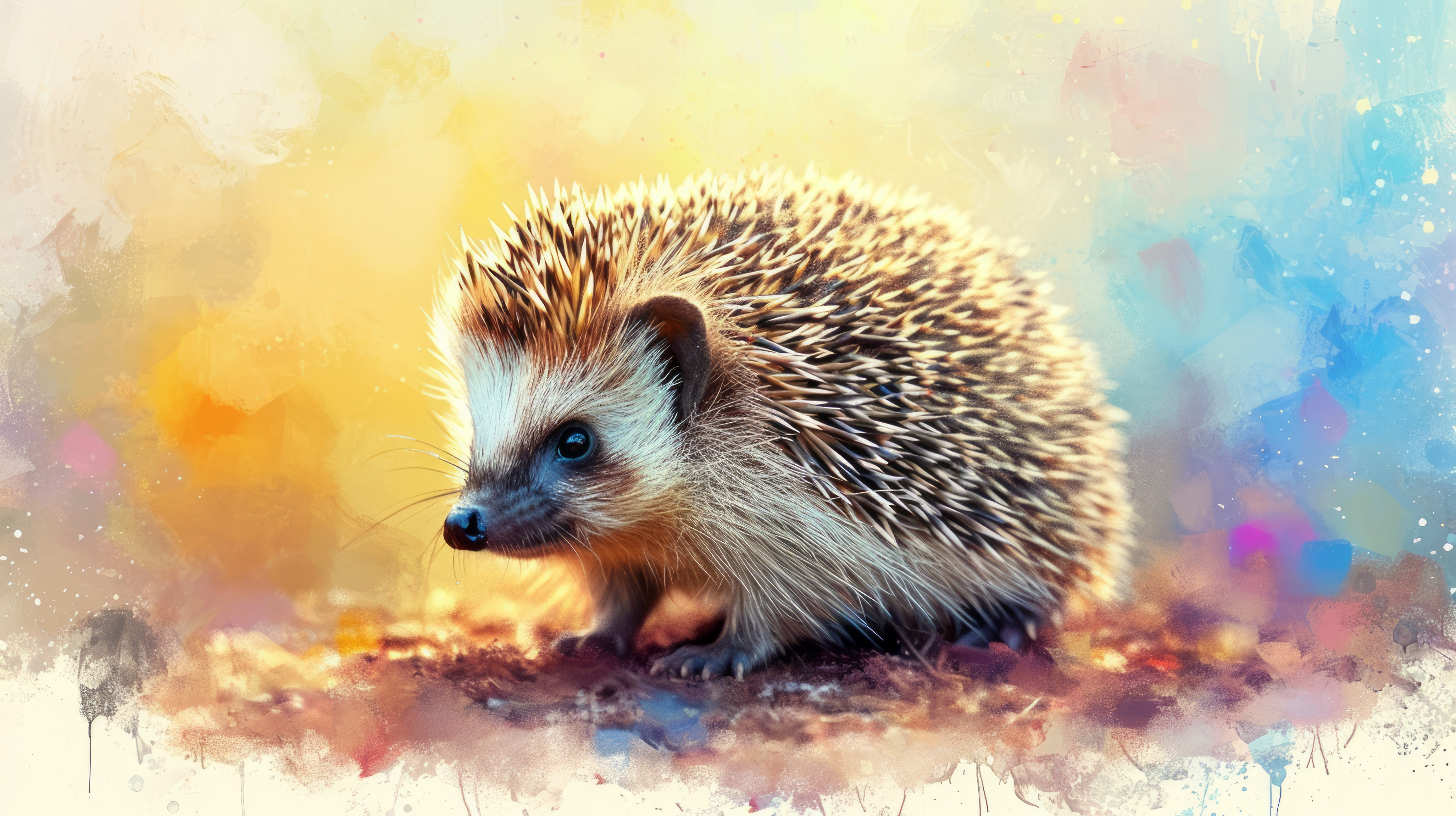 hedgehog pastel color illustration wallpaper white border edges amazing focus ar 169 00039 01