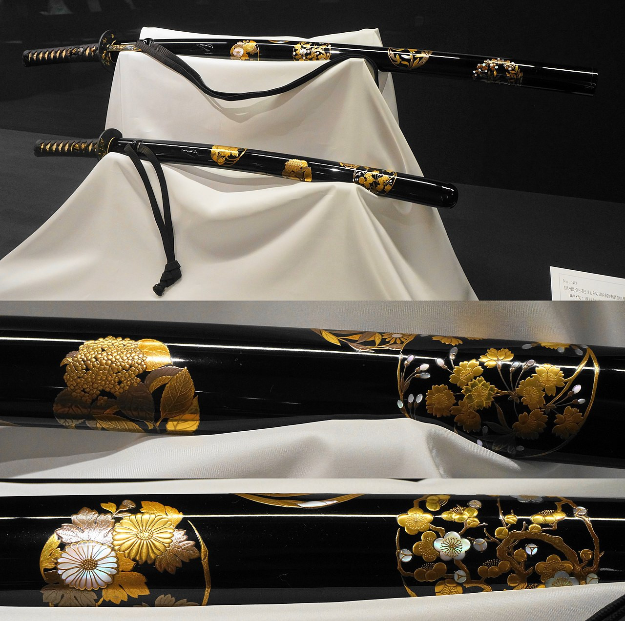 黒蝋色花丸紋蒔絵螺鈿鞘大小拵 Kuro roiro hanamaru mon makie raden saya daishō koshirae