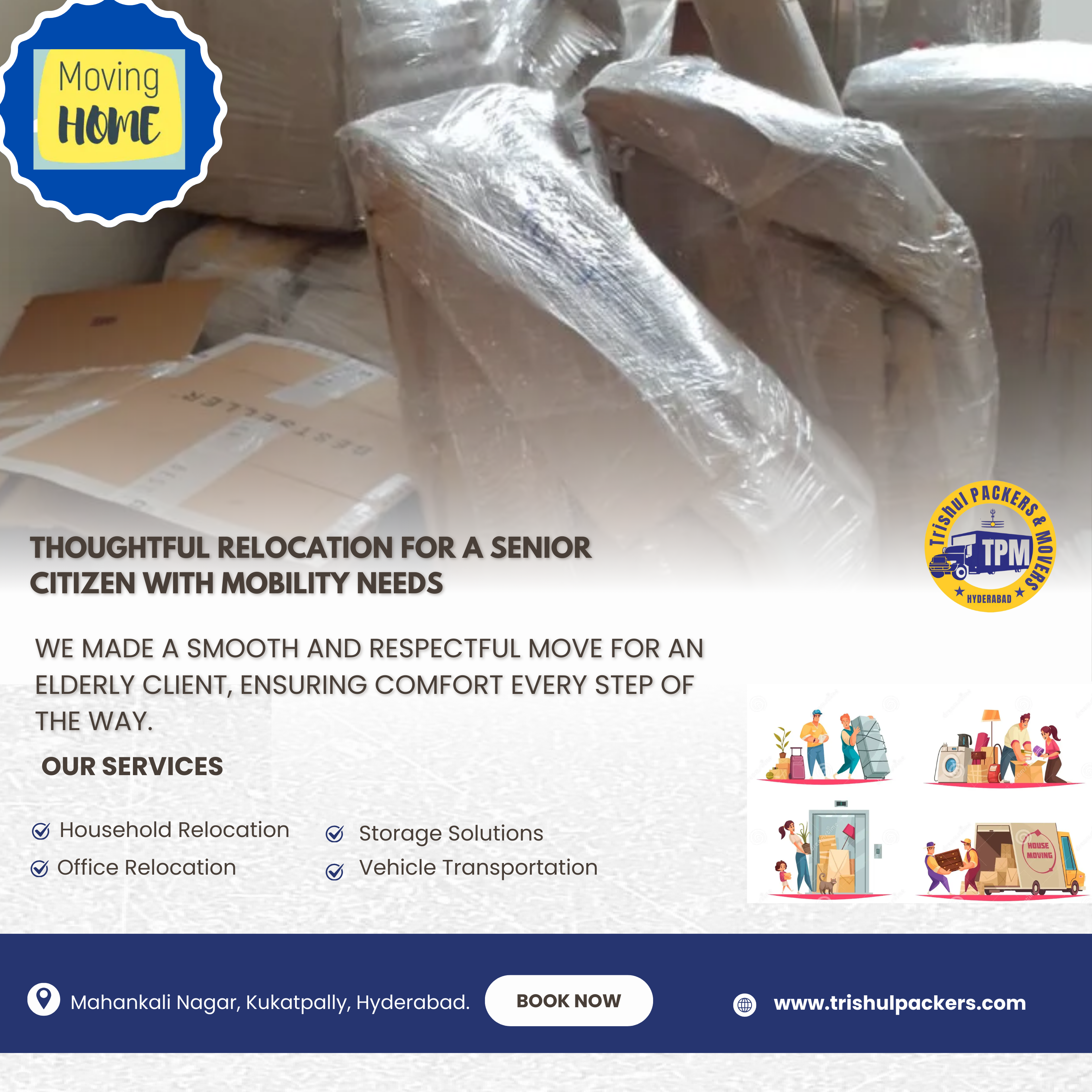 Helping a senior citizen move today with comfort and care