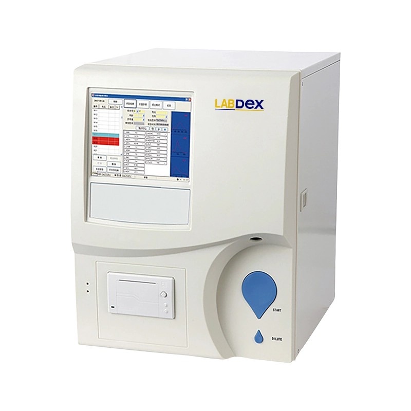 LabDex Hematology Analyzer is a fully automatic 3-part system that performs up to 60 tests per hour. It calculates CV% and SD automatically and stores over 200,000 results with histograms. A built-in thermal printer helps with quick and easy reporting.