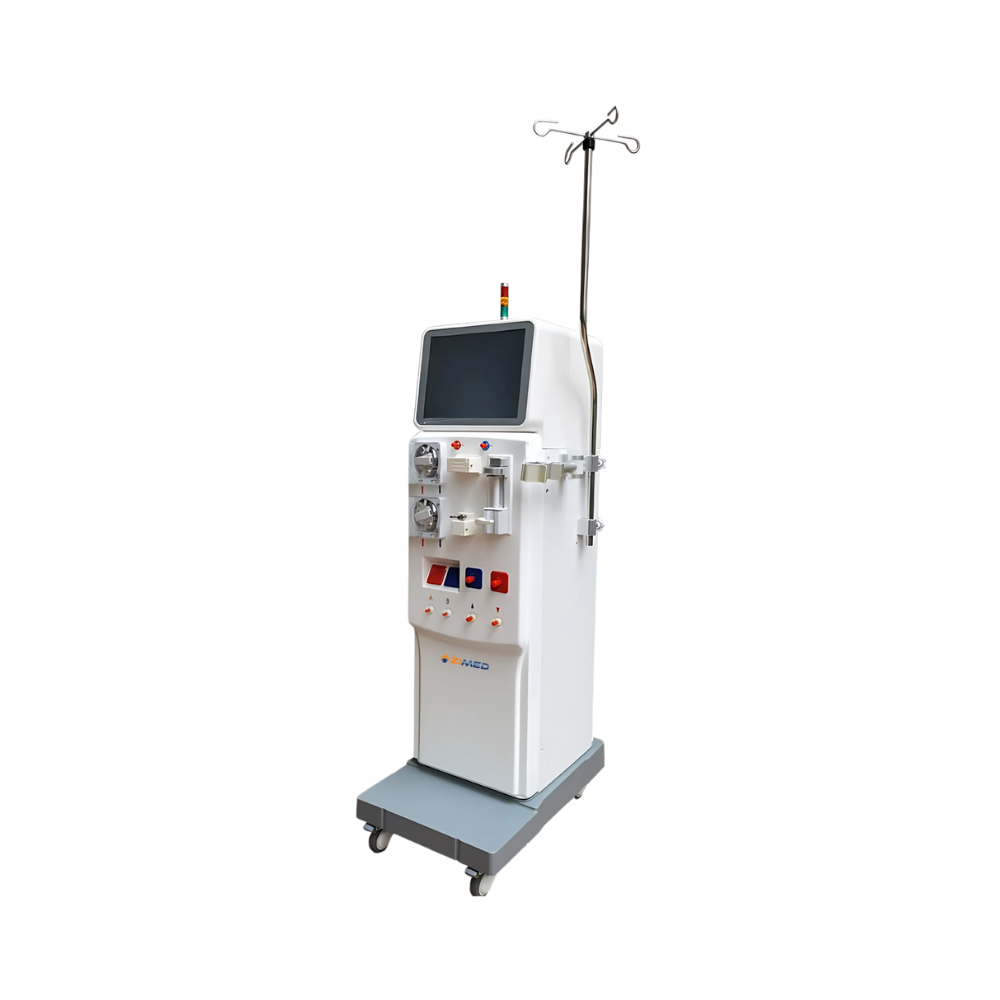Zimed Hemodialysis Machine ensures safe, pure treatment with 100% RO water recovery and copper-free components to prevent contamination. It offers customizable settings for patient comfort and efficient therapy. An intelligent air detection system safeguards against air entry, ensuring reliable care.