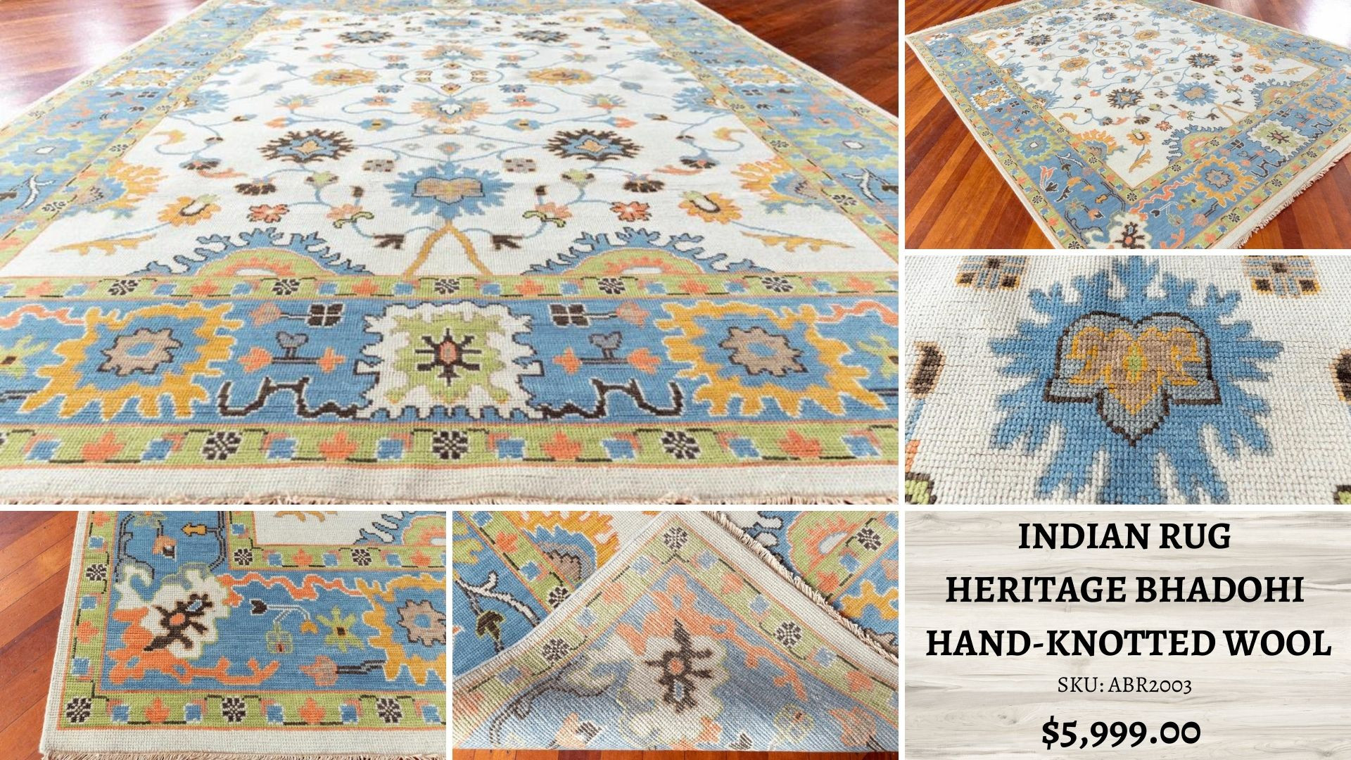 HERITAGE BHADOHI HAND KNOTTED WOOL INDIAN RUG