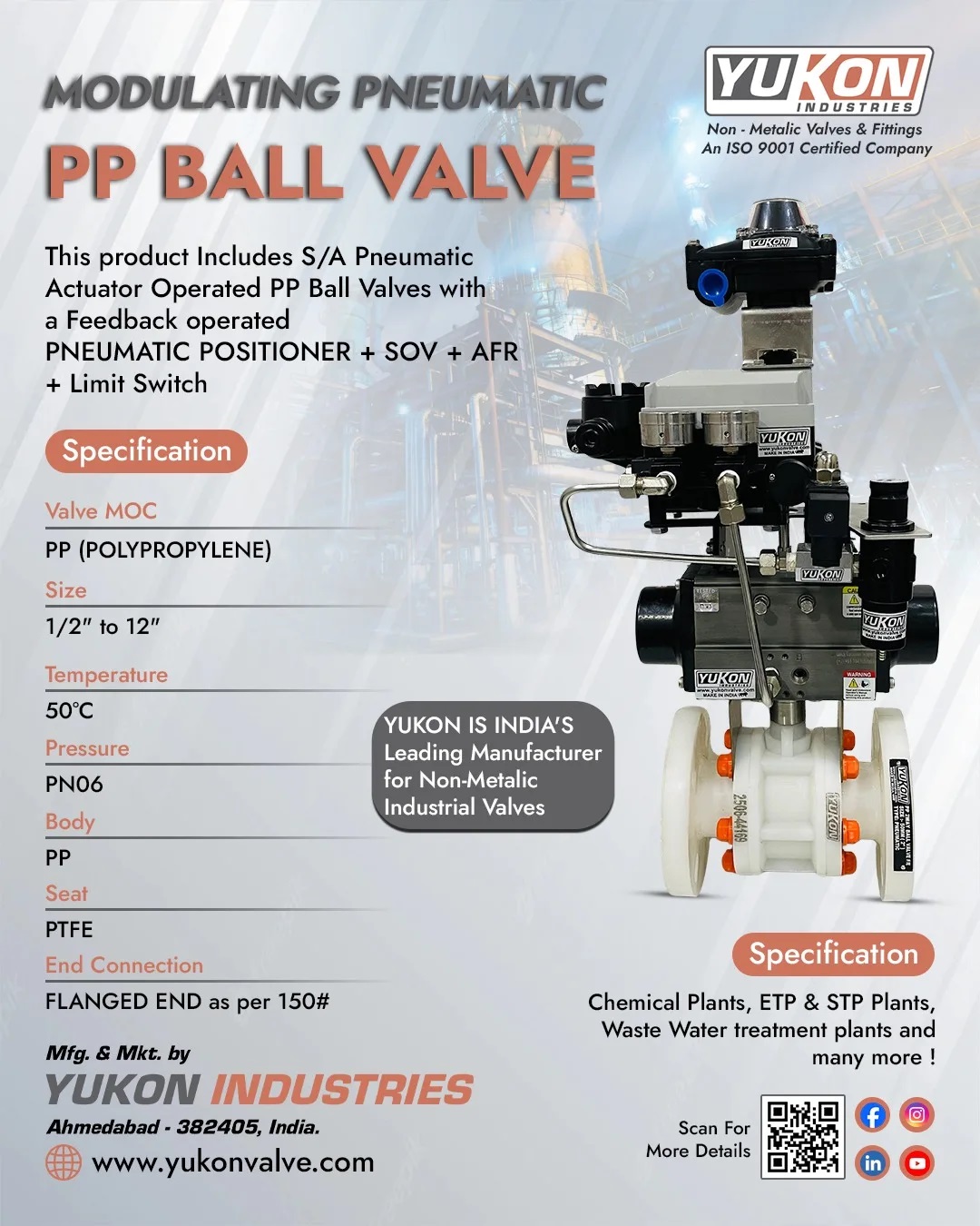 Yukon Industries offers high-quality PP valves designed for corrosion resistance, durability, and reliable performance. Our PP valves are ideal for chemical, water, and industrial flow control applications.