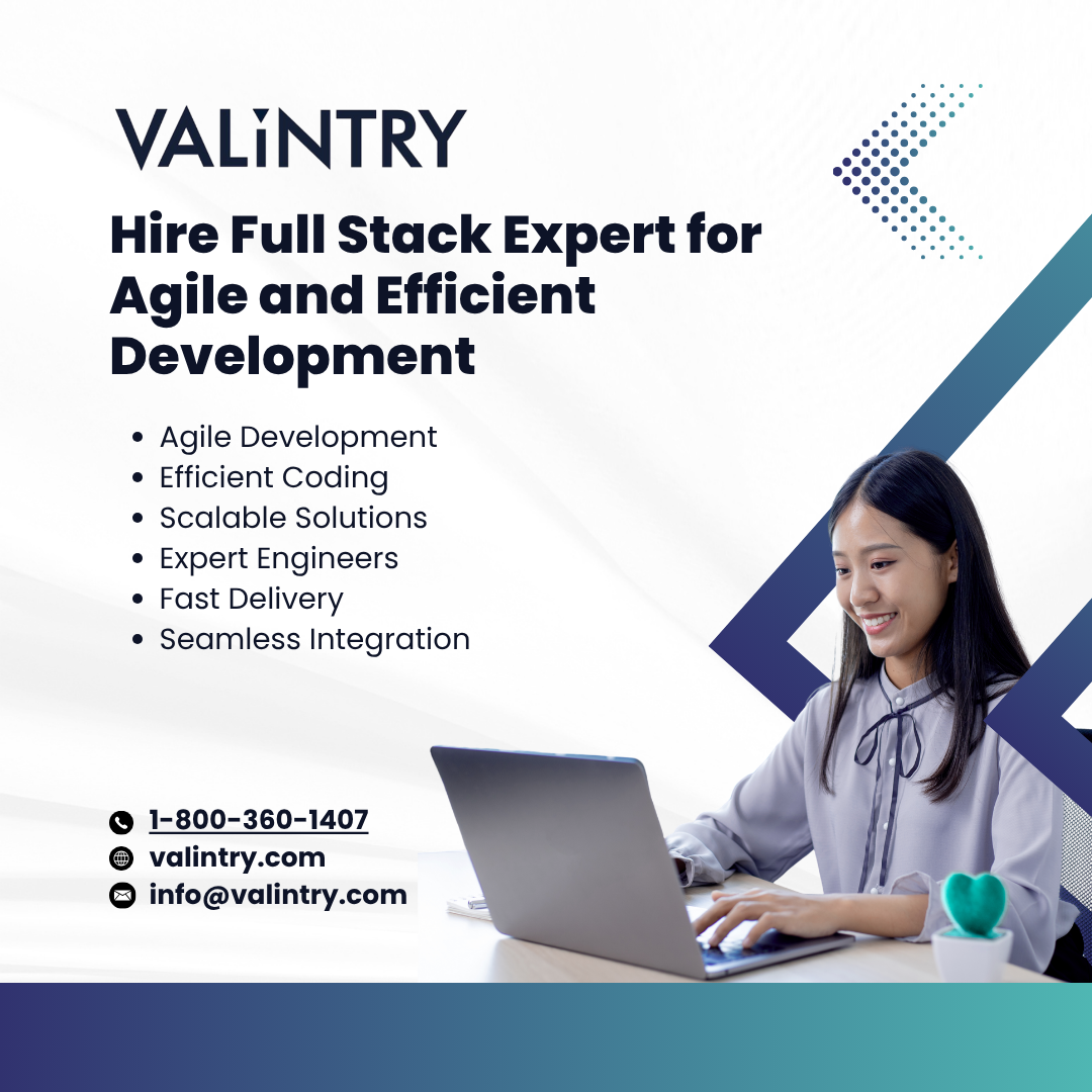 VALiNTRY helps businesses Hire Full Stack Expert professionals who can manage both frontend and backend development with efficiency and precision. In today’s fast paced digital environment, companies need versatile developers who can build scalable, high performance applications. VALiNTRY connects organizations with experienced full stack experts skilled in modern technologies, frameworks, and programming languages. Our recruitment team carefully evaluates each candidate’s technical expertise, problem solving abilities, and communication skills to ensure the right fit. With flexible hiring options including contract, contract to hire, and direct placement, VALiNTRY makes it easy to hire full stack expert talent and accelerate development success.