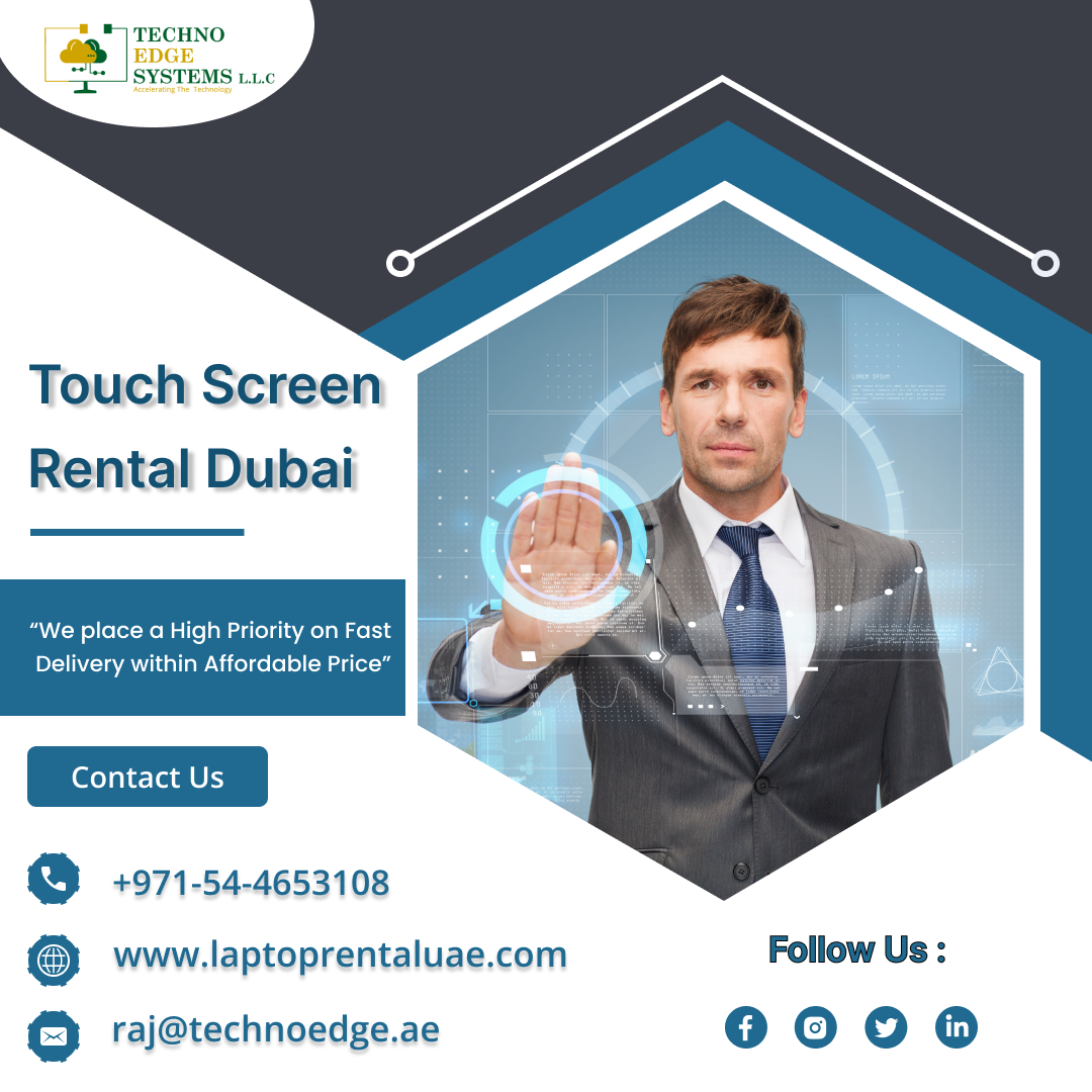 Techno Edge Systems LLC is dynamic touch displays will elevate your presentation to the next level. The crystal-clear display and responsive touch interface make the presentation simple and interesting. Give your audience an amazing experience with Interactive Touch Screen in Dubai, UAE. Contact us at +971-54-4653108 or Visit - https://www.laptoprentaluae.com/touch-screen-rental-dubai/