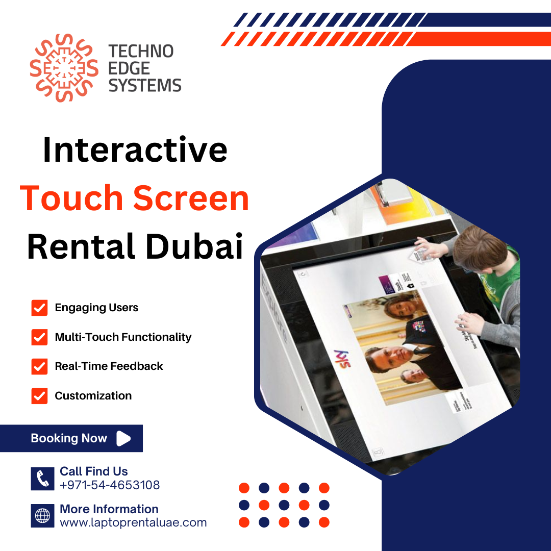 Hire the best Interactive Touch Screen Rental Dubai with Techno Edge Systems LLC. Our touch screens are perfect for events, meetings, and more. Enjoy clear displays and easy interactions to engage your audience. Call us at +971-54-4653108 and make your event stand out! Visit us - https://www.laptoprentaluae.com/touch-screen-rental-dubai/