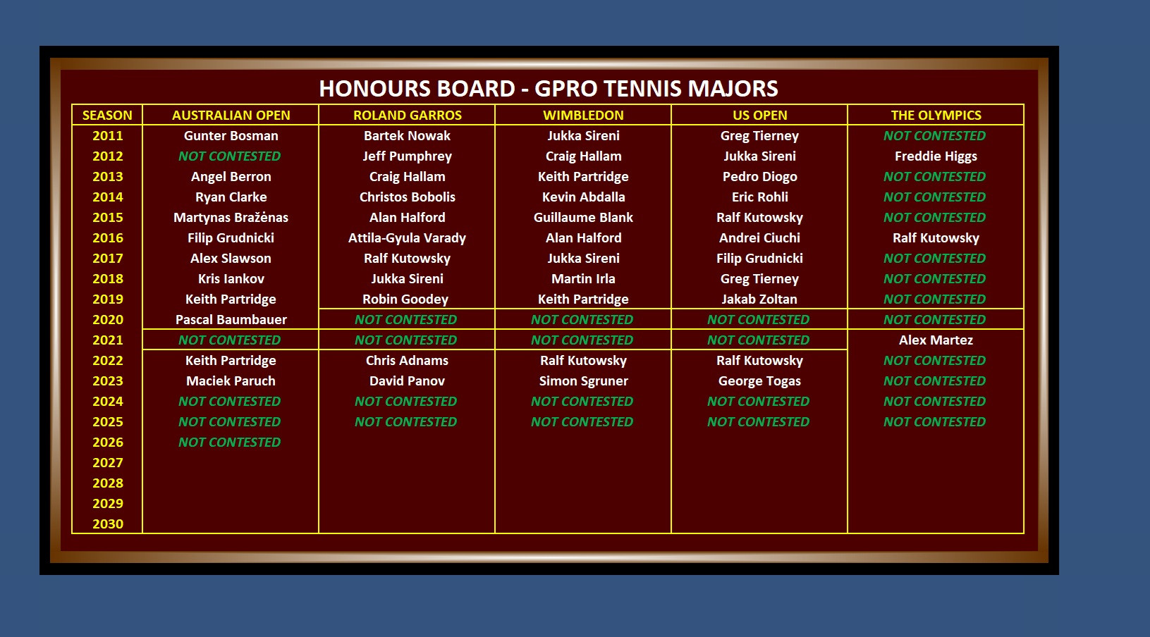 Honours Board Tennis