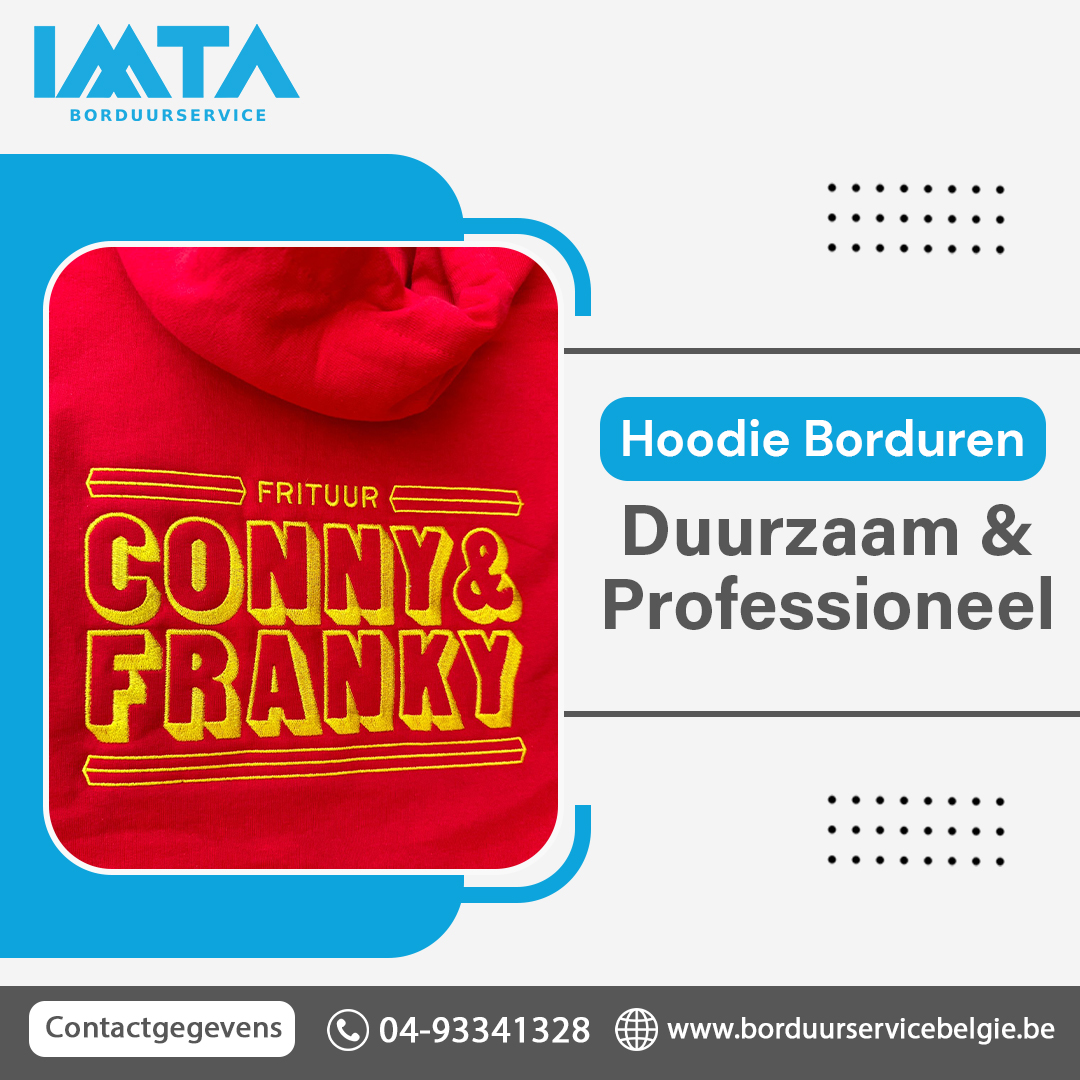 Borduurservice België biedt professionele hoodie-borduring aan voor bedrijven, verenigingen en particulieren. Laat je logo of ontwerp duurzaam borduren met oog voor detail en kwaliteit. Onze moderne machines garanderen een strak en elegant resultaat. Perfect voor promotie, teamkleding of cadeaus.