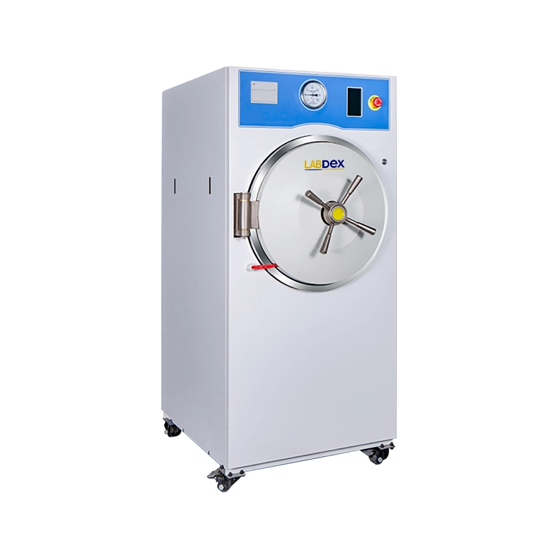Labdex Horizontal Autoclave is a fully automatic horizontal autoclave with cylindrical chamber, jacket and insulation allowing steam preheating for uniform sterilization and drying. Built with SUS 304 chamber and door, LCD touch screen control, preset programs, vacuum drying, safety interlock door and HEPA filter.