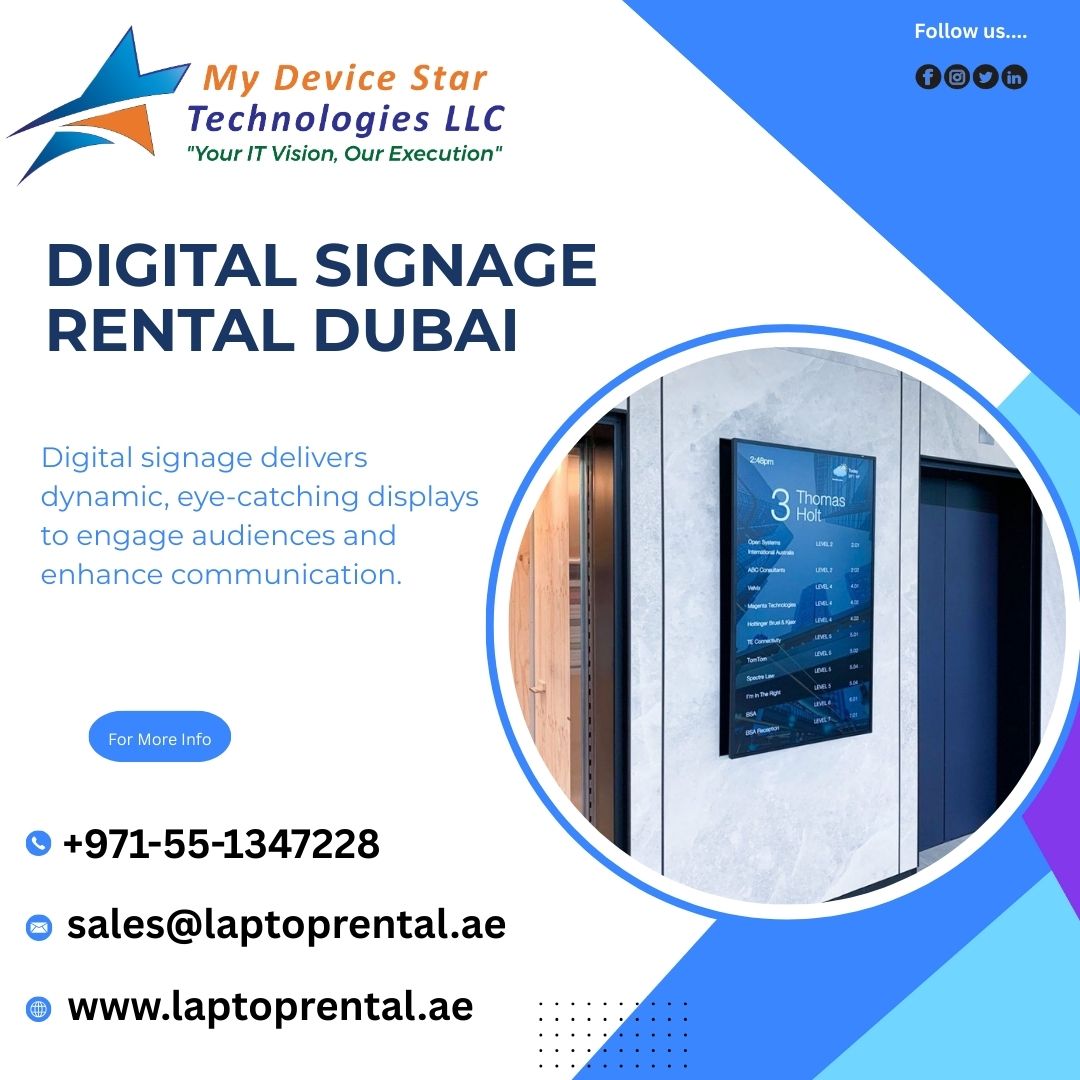 My Device Star Technologies LLC provides versatile Digital Signage Rental Dubai, UAE, offering various models and versions designed to showcase promotions, enhance event presentations, and improve audience engagement with dynamic visual communication. Call +971-55-1347228.