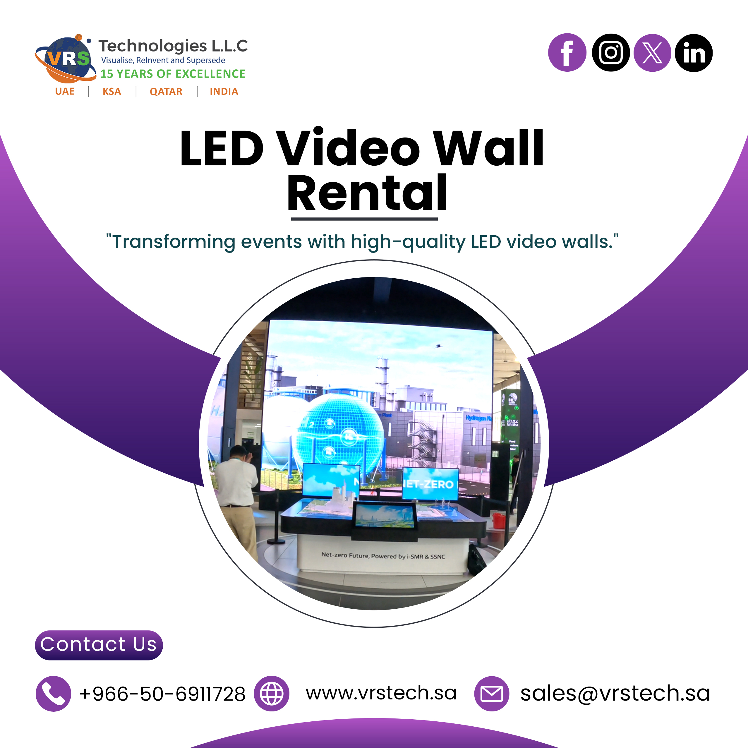 LED Video Wall Rental in Riyadh is a game-changer for events, offering stunning visuals that captivate audiences and enhance engagement. From corporate events to exhibitions, LED video walls create immersive experiences, drawing larger crowds and leaving lasting impressions. At VRS Technologies, we provide cutting-edge LED video wall solutions tailored to your event needs. Contact us at +966-50-6911728 to elevate your event’s visual appeal and boost attendance effortlessly.