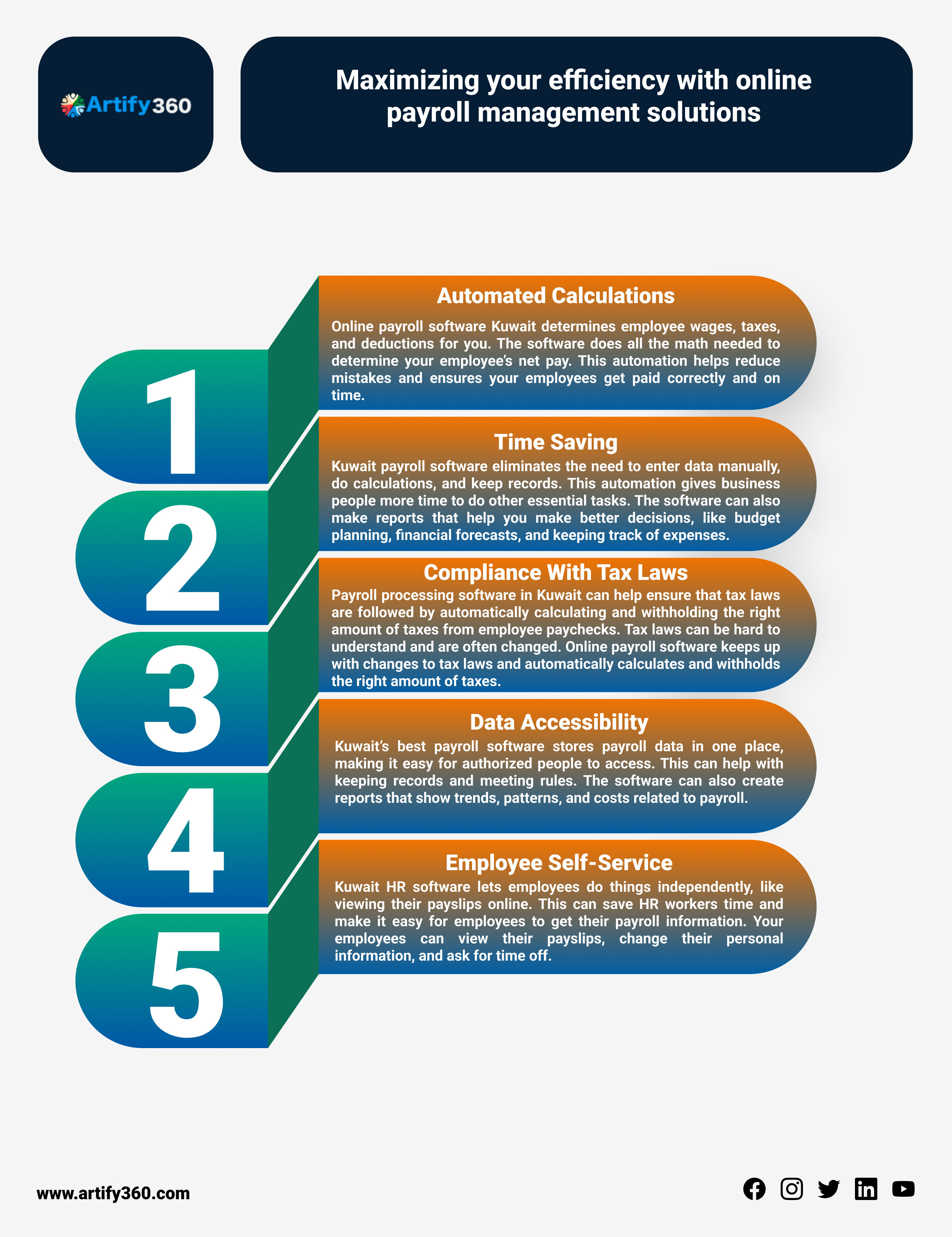 You can automate payroll computations, tax deductions, and adherence to local laws with HR software in Dubai. Real-time data access guarantees precision and openness, and integrated employee self-service portals make record-keeping and leave administration simpler.