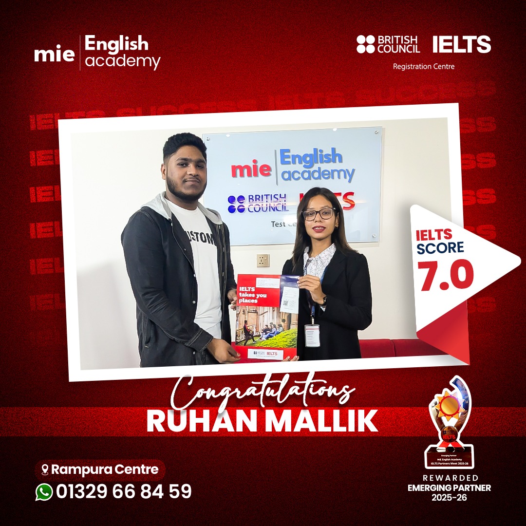 His journey proves that with focused preparation, any target score is achievable. What’s stopping you from reaching your goal? Whether it’s fluency or exam technique, MIE English Academy has you covered. Visit our Rampura Centre today and build the English confidence you’ve been looking for.