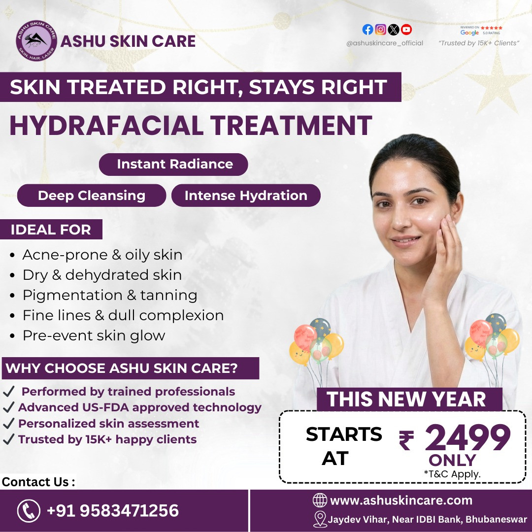 Start the New Year with HydraFacial at Ashu Skin Care, a clinically trusted procedure designed to deeply cleanse, hydrate, and restore your skin’s natural glow.