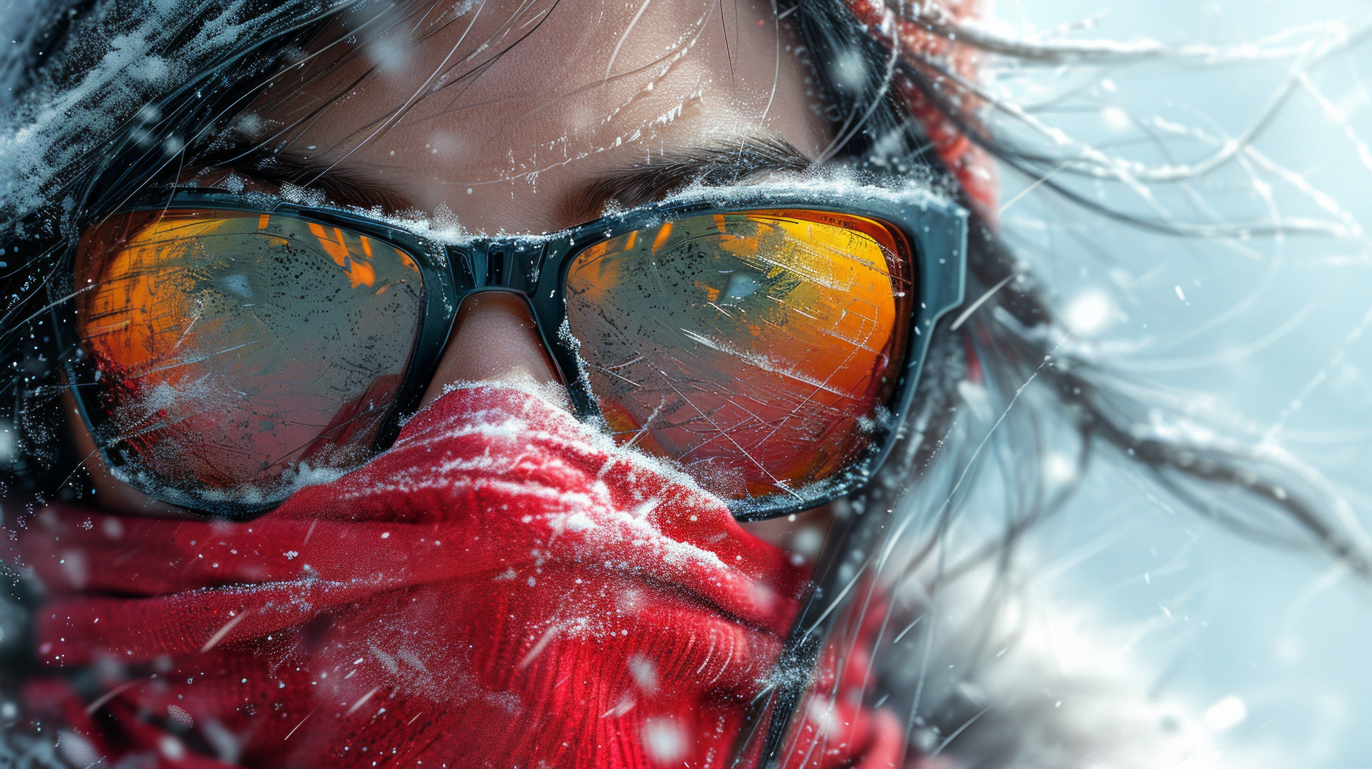 illustration on white background of a A portrait of a happy woman with fun sun glasses on a cold and